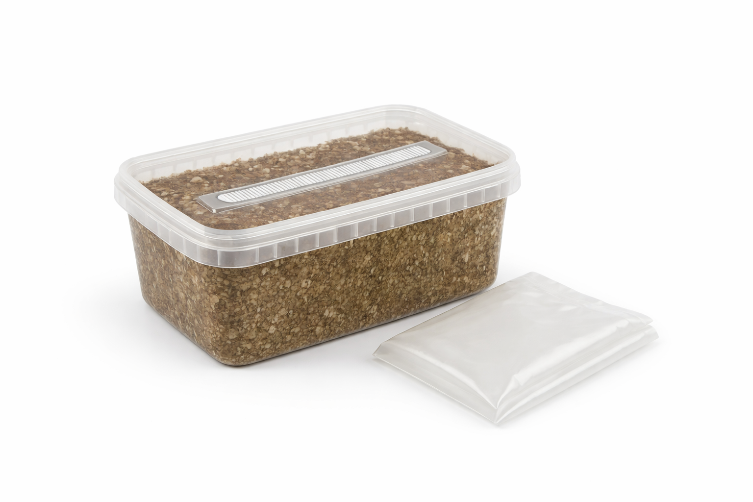 • 1x container with sterilised substrate (1200 ml (cc) or 2100 ml (cc))
